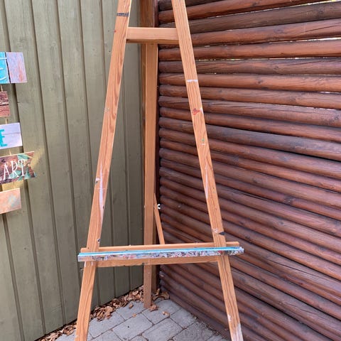 Staffeli fra søstrene grene i lyst træ med justerbar højde til lærred eller plade.