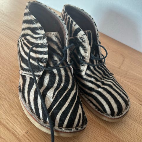 Disse ørkenstøvler fra Clarks Originals har et iøjnefaldende leopardprint. De er designet med snørebånd og en robust sål, der giver et klassisk og komfortabelt look. Støvlerne er velegnede til hverdagsbrug og kan styles med forskellige outfits. Brugte men fejler intet.