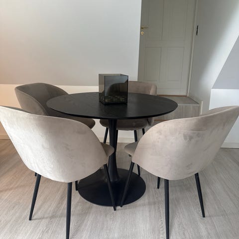 Sælger vores sorte "Ingatorp" spisebord med ekstra udtræksplade.