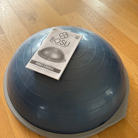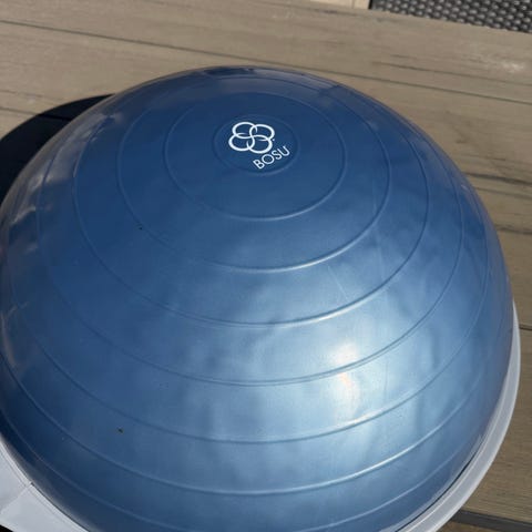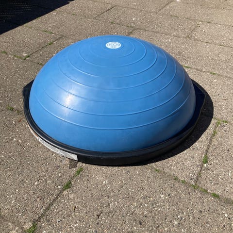 BOSU balancebold i blå med sort hård bund. God til øvelser hvor du står eller ligger på den buede side.