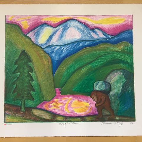 Farverigt litografi af Hermann Stilling, nummereret 209/220 og signeret nederst. Sidder i enkel lys ramme med passepartout klar til ophængning.