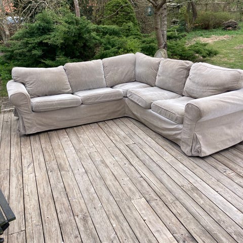 Pæn og velholdt Ektorp 3 person sofa med Grå betræk, der følger hvidt betræk med, både til sofa og puff.