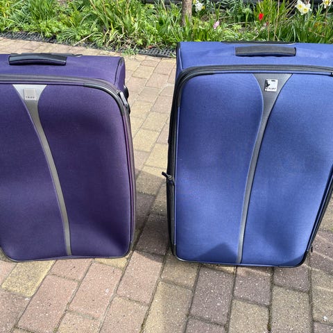 Håndbagage kuffert, 4 hjul , Sort stof, måler ca 54 h x 37 b x 23 d med 2 udvendig lommer og lommer indvendigt, kodelås manual medfølger