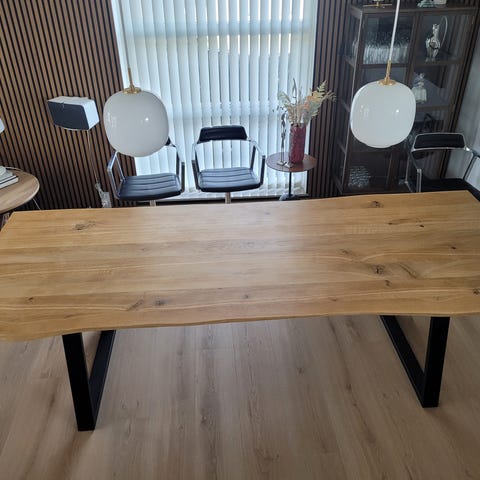 Rigtig flot spisebord udført med junckers sildebensparket. Bordet er olieret. Har ganske få ridser, hvilket kan fjernes ved let slib og ny gang olie