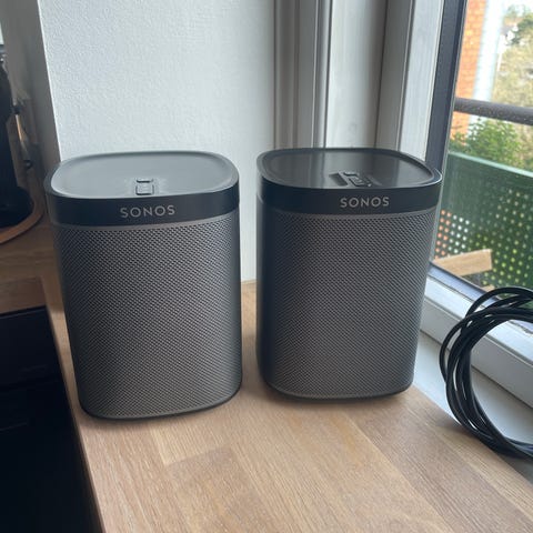 2 stk. Sonos Play:5 højttalere i hvid. Virker IKKE trådløst da de er uddaterede ift. nuværende app, men spiller perfekt kablet med brug af Sonos S1 controller app. Af princip sender jeg ikke elektronik. Køb sker ved fremmøde på adressen i Gentofte og fuld betaling, ingen andre måder. Enkelt højttaler kan købes for 600.