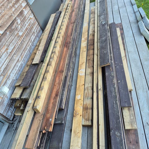 Bunke træstammer skåret på langs, flere stykker med bark på siderne. Godt til små bygge- eller hobbyprojekter, længde og bredde kan ses på billederne med tommestok. velegnet til højbed eller plankeværk sjove byggeopgaver i haven