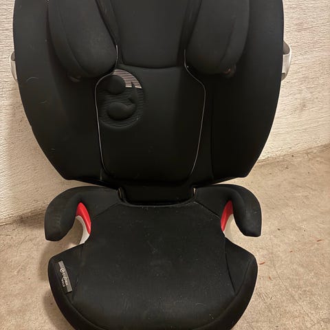 Cybex selepude/autostol i sort med høj ryg og justerbar hovedstøtte. Har polstrede sider og armlæn.