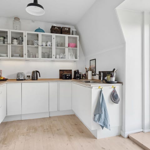 Nogle hvidevarer er i bedre stand end andre. Opvaskeren er nærmest ny.