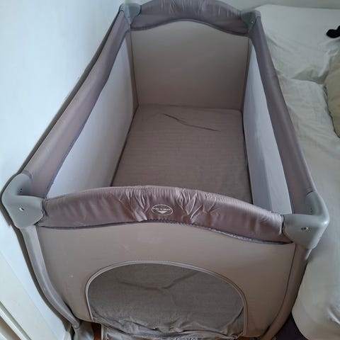Seng fra Maxi Cosi med justerbart hovedgærde rigtig god til babyer med tendens til refluks. Fungerer både som enkeltseng og sidecrip, er utrolig nem at pakke sammem og tage med. Står som helt ny, kun brugt få gange.
