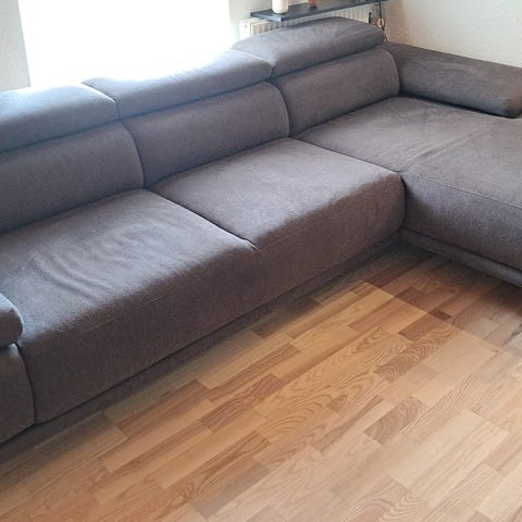 Sofaen er brugt og har nogle synlige brugsspor/pletter (se billeder), hvilket er afspejlet i prisen. Den kan muligvis friskes op med en rens.