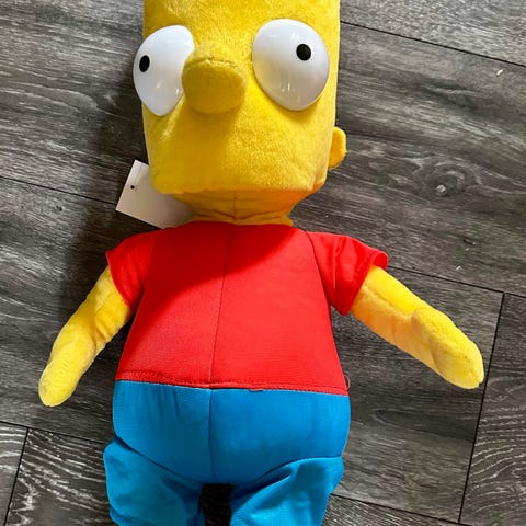Sød gul Pikachu bamse fra Pokémon med sorte ører og røde kinder. Blød og fyldig, klar til at stå på hylden eller bruges som krammebamse.