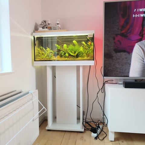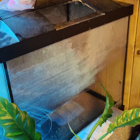 Stort glas-terrarium med låg . 160 cm med alt indhold . Vi har en lille fyr der bor i det på 10 uger med stamtavle . Vi har haft hamster altid hele livet men pludselig hoster min søn og hans øjne klør helt vanvittig det er en smule frustrerende :( han har ikke noget navn endnu . Han bider ikke og er god til at være i hænder . Buret sælges med dyr og indhold