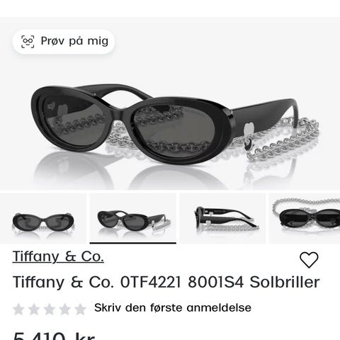 Solbriller dame, Tiffany&Co., Brugt kun to gange. Følges med to æsker, en dust cloth og pleje brouchur.