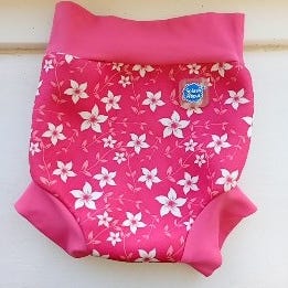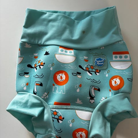 Splash About svømmeble i str 4xl (98-104 str) i gul og mørkeblå. Med bred elastisk kant i taljen og benene samt UPF50+ mærkning.
