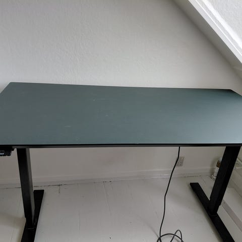 Hævesænkebord raw wall i grå antracit linoleum med sortlakeret stel.