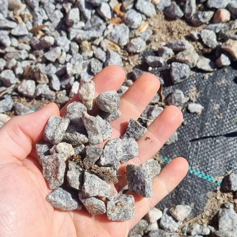 Granitskærver i to størrelser. Rest fra nyt omfagnsdræn.