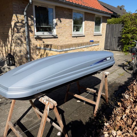 Kvalitets Mont Blanc tagboks i grå med sort bund, længde ca.225 cm, bredde ca.55cm. Easy monteringsbeslag, låget åbnes langs siden for nem adgang. 2 nøgler.