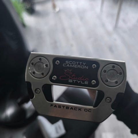 Scotty Cameron Phantom putter med 35" skaft og sort greb. Har sort headcover med gul skrift og klassisk stålskaf.