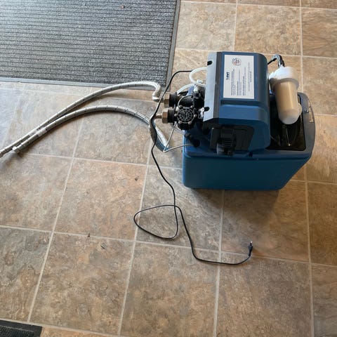 Vi vasker biler med regnvejr, men grundet for meget salt i vandet, måtte vi have et osmoseanlæg i stedet. Købt for knapt 10.000,- i 2025