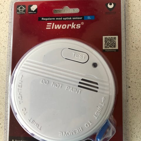 Røgalarm, Inklusiv batteri, monteringsmateriale og brugervejledning.