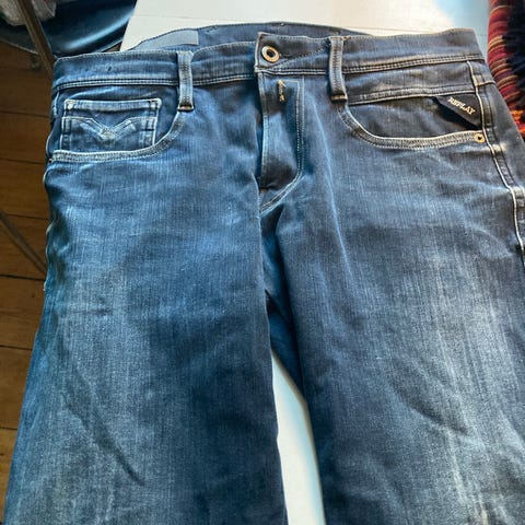 Et par mega cool denimbukser fra BLS Hafnia med samme print foran og bagpå. Fra en af første kollektioner. Loose fit. Størrelse 32x32