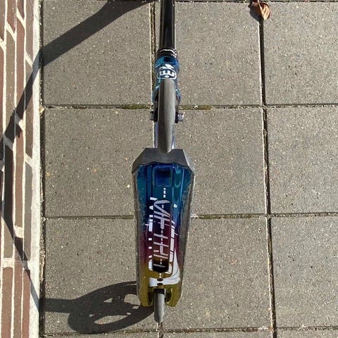 Jeg sælger mit trick løbehjul som jeg næsten ikke har brugt og nu har jeg ikke tid til at få den brugt.