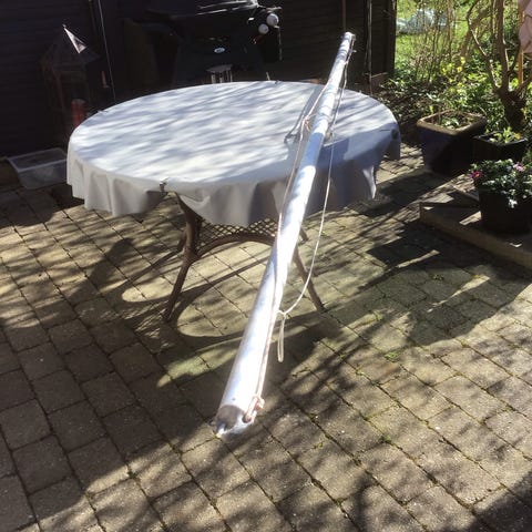 Spilerstage 360 cm. Har været brugt til Ballad 30/ÅH30. Gammel men udmærket stand. Trænger til polering.