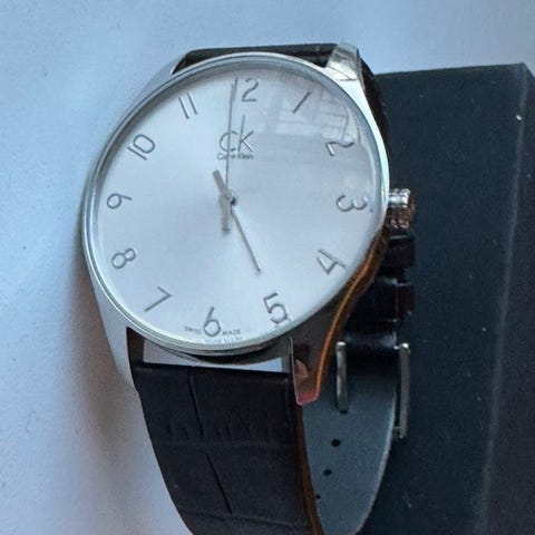 Smuk Herreur, Calvin Klein. Sort urskive. Ø 42 mm. Mangler batteri og remmen skal skiftes. Uret næsten som ny fejl intet.