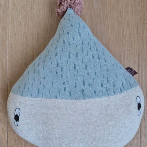 Vendbar pude som kan laves om til en pingvin bamse. I fin stand. Kan vaskes i vaskemaskinen.