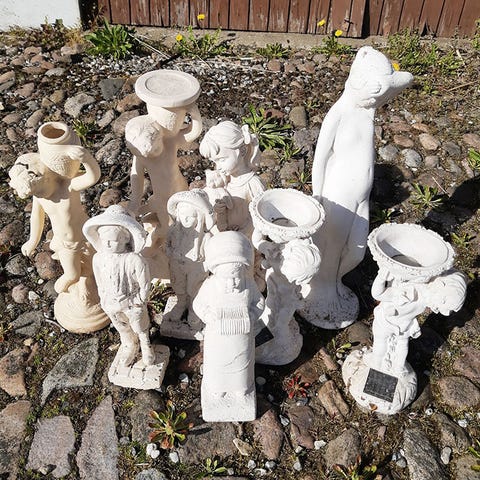 Havefigurer og krukker til haven – beton/sten