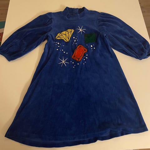 Mini Rodini kjole i bomuld med leopardprint i str 128 til pige. Langærmet model med rund hals og blødt stræk i stoffet. Der er et par små pletter af maling