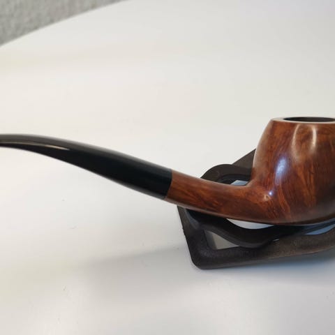 To klassiske træpiber med sort mundstykke sælges samlet. En af piberne har en lidt rundere skål, mens den anden er mere lige i formen. samlet pris 160-