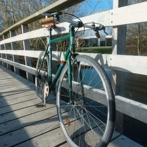 Der er synlige brugsmærker og patina, men kører fint og stellet er solidt. Med en omgang service - f.eks. på de 7 indvendige gear - og lidt pudsecreme kan den genfinde den originale fremtoning.