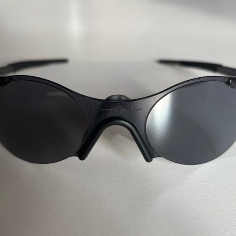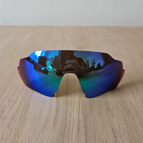 Rigel sportsolbriller med røde spejlglas og sort stel. Brugt primært til løbetræning. Ventilerer godt.