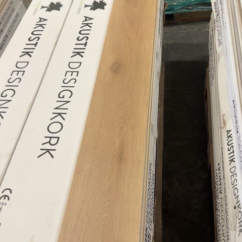 Novego vinylgulv i egetræslook sælges samlet, der er flere hele pakker. Kliksystem på brædderne, nemt at lægge i fx stue eller værelse.
