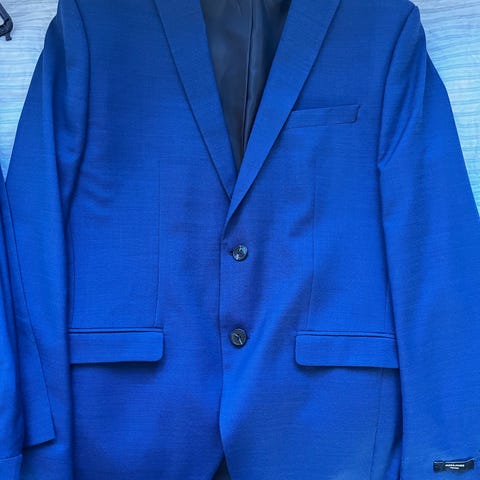 Flot blåt jakkesæt med både bukser og jakke