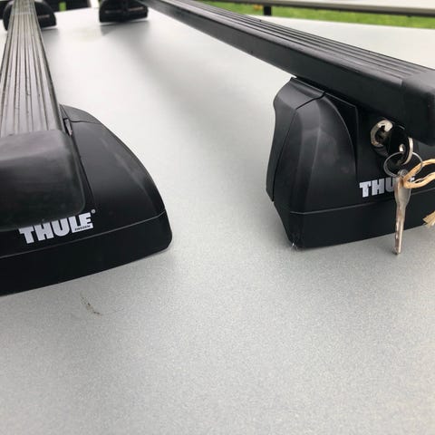 Bøjlerne er brugte, men fremstår i pæn stand med almindelige brugsspor. Der medfølger nøgle/værktøj samt original monteringsvejledning.