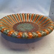Stort rundt fad med blå mønster. Diameter 26 cm