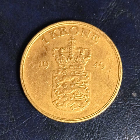 Danmark Mønter 1 KR KRONE 1924 Christian X KM#824 Den Sværeste!