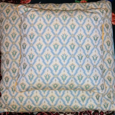 Pyntepude fra &Tradition med grafisk mønster i brun, beige og sort. Har kant hele vejen rundt og blød fyldpude indeni.