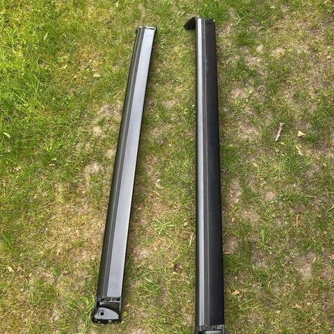 Sæt sorte tagbøjler til bil sælges. Har justerbare beslag og fastgøres med skruer som på billederne.