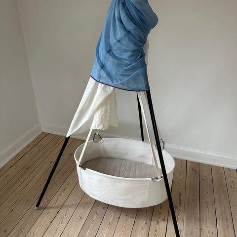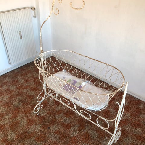 Hyggelig GL. Vugge på hjul. Sælges med madras.