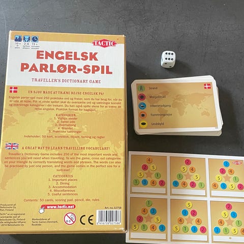 Learn English brætspil fra SkyHigh Games med kort og billeder til at øve engelske ord. Sjovt spil til børn med tegninger og små kort, der lægges sammen med ordene. Sendes kun ved samlet køb for over 200.