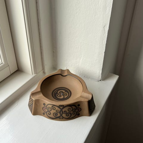 Fin skål / askeskål / askebæger i terrakotta fra L. Hjorth, Bornholm. Med holder til tændstikæske på toppen.