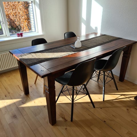 Har været i familien i 3 generationer. Bordet kan forlænges til 180 cm