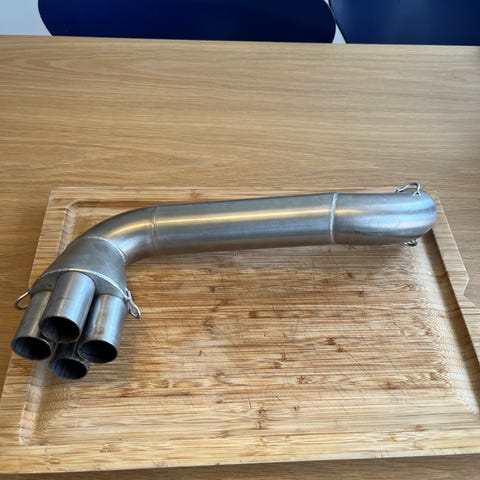 Til salg: Komplet S-curve udstødningssystem til BMW K100 – perfekt til dig, der ønsker et mere råt look, bedre lyd og fleksibel montering med høj kvalitet.