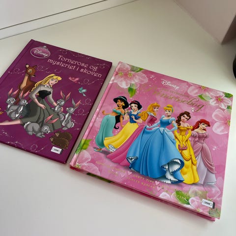 Disney-bog: Den Store Prinsessebog med kendte prinsesser på hård, lyserød forside. Tykt bogformat med masser af sider, klar til højtlæsning for børn der elsker Disney-prinsesser.