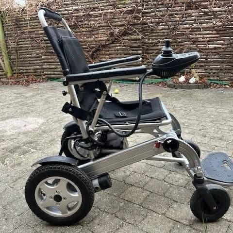 Elektrisk kørestol, som ny , kun brugt sparsomt i 1 1/2 år. Købt hos Billige Hjælpemidler i Ry. Meget alsidig brugbar med store luftgummihjul og til at klappe sammen og have med bag i bilen, ligesom den opfylder tre praktiske funktioner: Kørestol, rollator og 'indkøbsvogn'. - Lithiumbatterier/motor klarer fint stejle stigninger og op til 20 km. Nypris 13.000,- max hastighed ca. 6 km/time