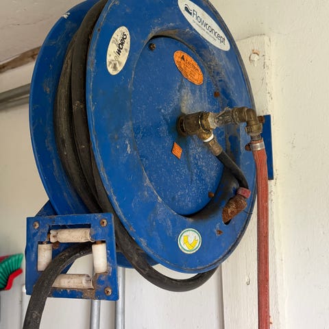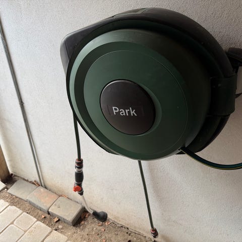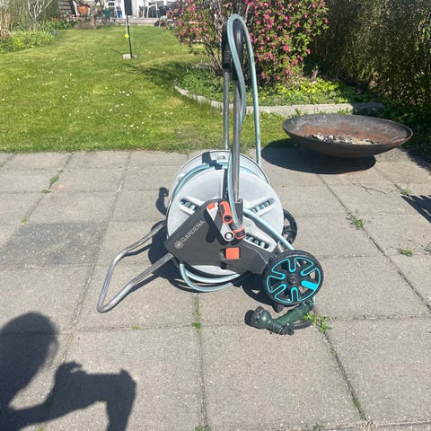 Højkvalitets Automatisk slangeopruller med 20 meter 1/2" hybrid vandslange. Sælges da jeg ikke har behøvet for udvendigt vand længere.