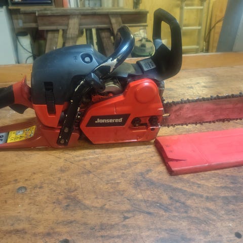 Jonsered 2045 motorsav med Oregon sværd sælges. Har ikke været startet de sidste par år, men har kørt indtil da.